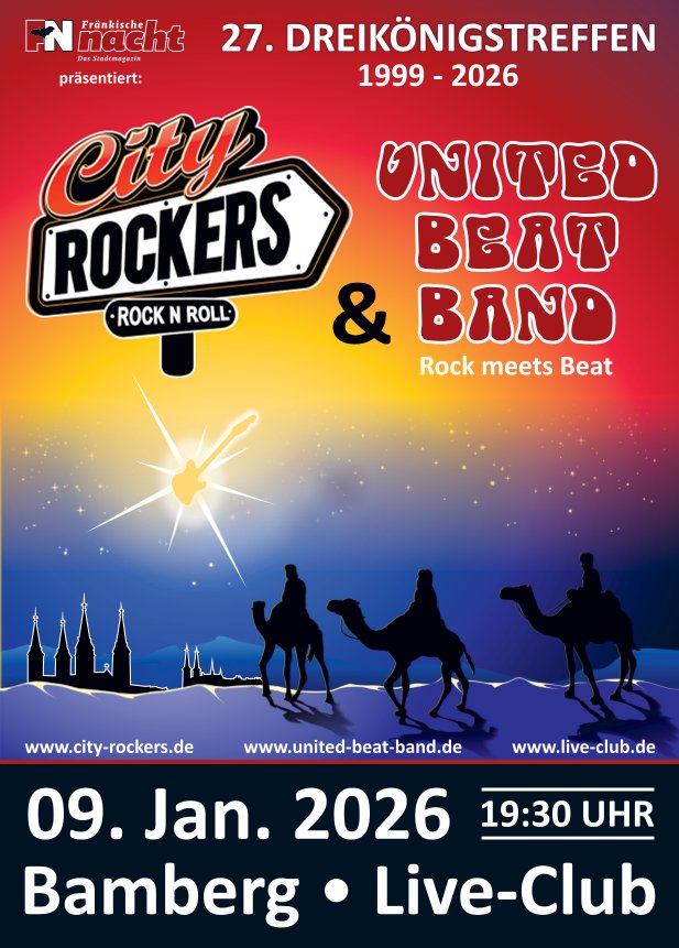 Die UNITED-BEAT-BAND & City Rockers treffen sich zum dritten Mal beim 27. Dreikönigstreffen!