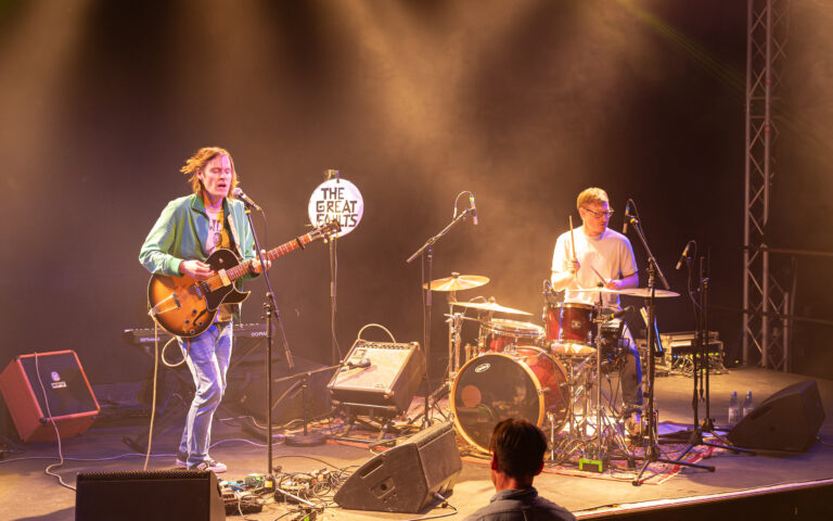„The Great Faults“ sind ein Indierock-Duo aus Mülheim an der Ruhr, das auf der Bühne seine Instrumente wechselt.