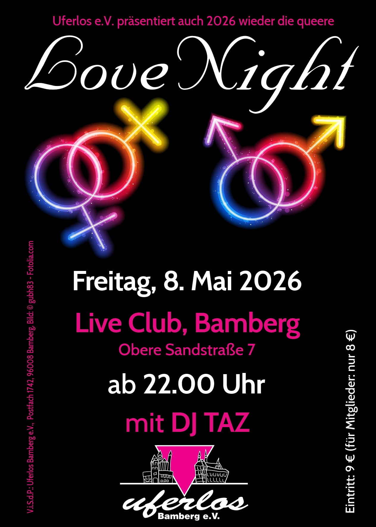 Heute am Freitag steigt wieder unsere überregional bekannte und beliebte "Love Night" – im Live-Club in der Bamberger Sandstraße. Hier dürft Ihr wieder zu den heißen und fetzigen Beats ordentlich feiern und abtanzen bis in die frühen Morgenstunden und dabei so richtig Party machen :)