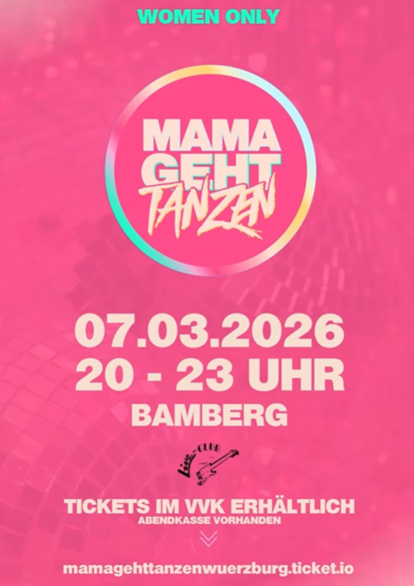 Seid dabei und sichert euch euer Ticket im VVK unter https://mamagehttanzenwuerzburg.ticket.io/JSS7vCWP/?lang=de oder an der Abendkasse.