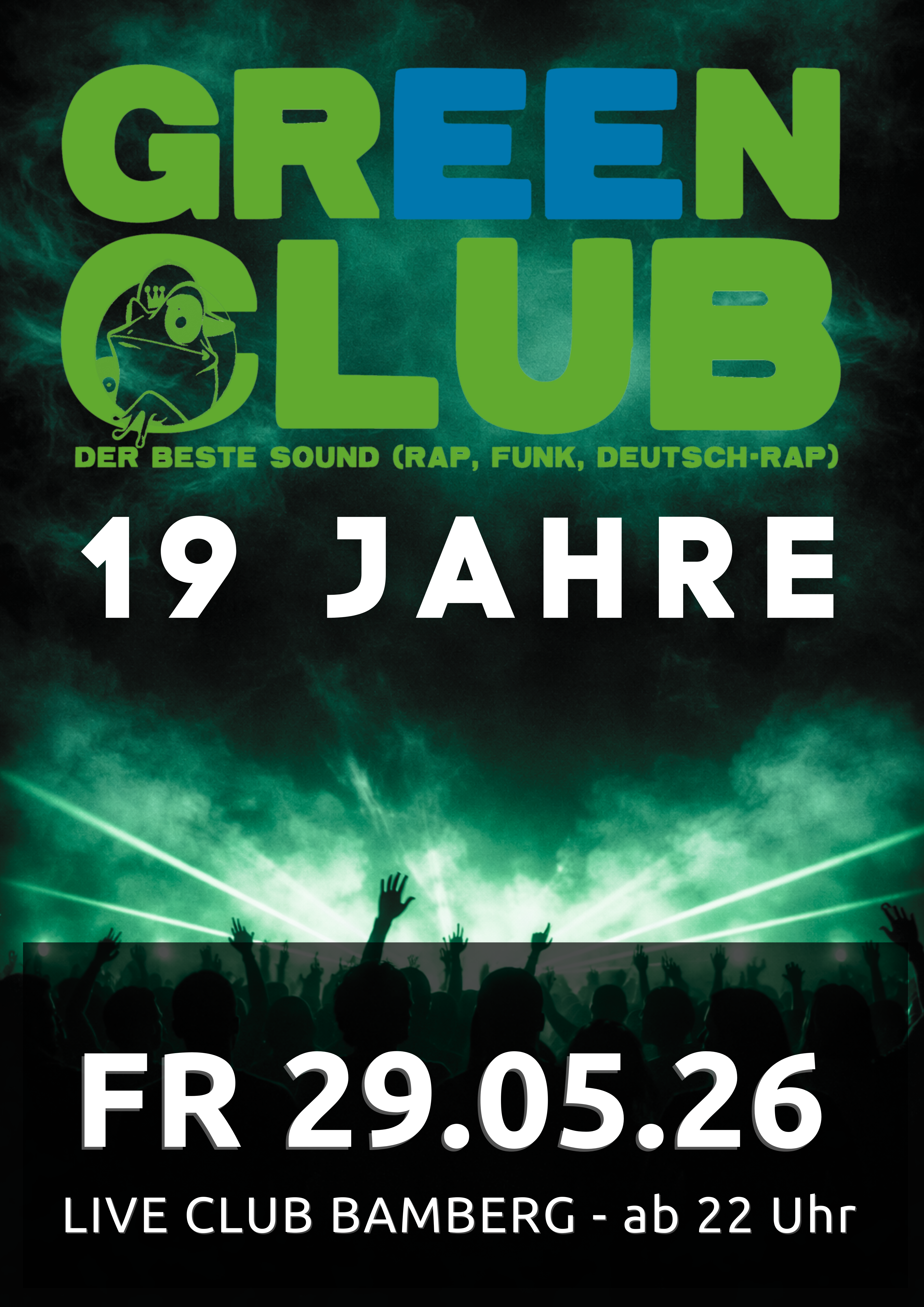 Zum 19-jährigen Jubiläum wird eine Nacht gefeiert, die auf fast zwei Jahrzehnte Clubgeschichte zurückblickt und zeigt, warum der Green Club bis heute seinen festen Platz hat.
