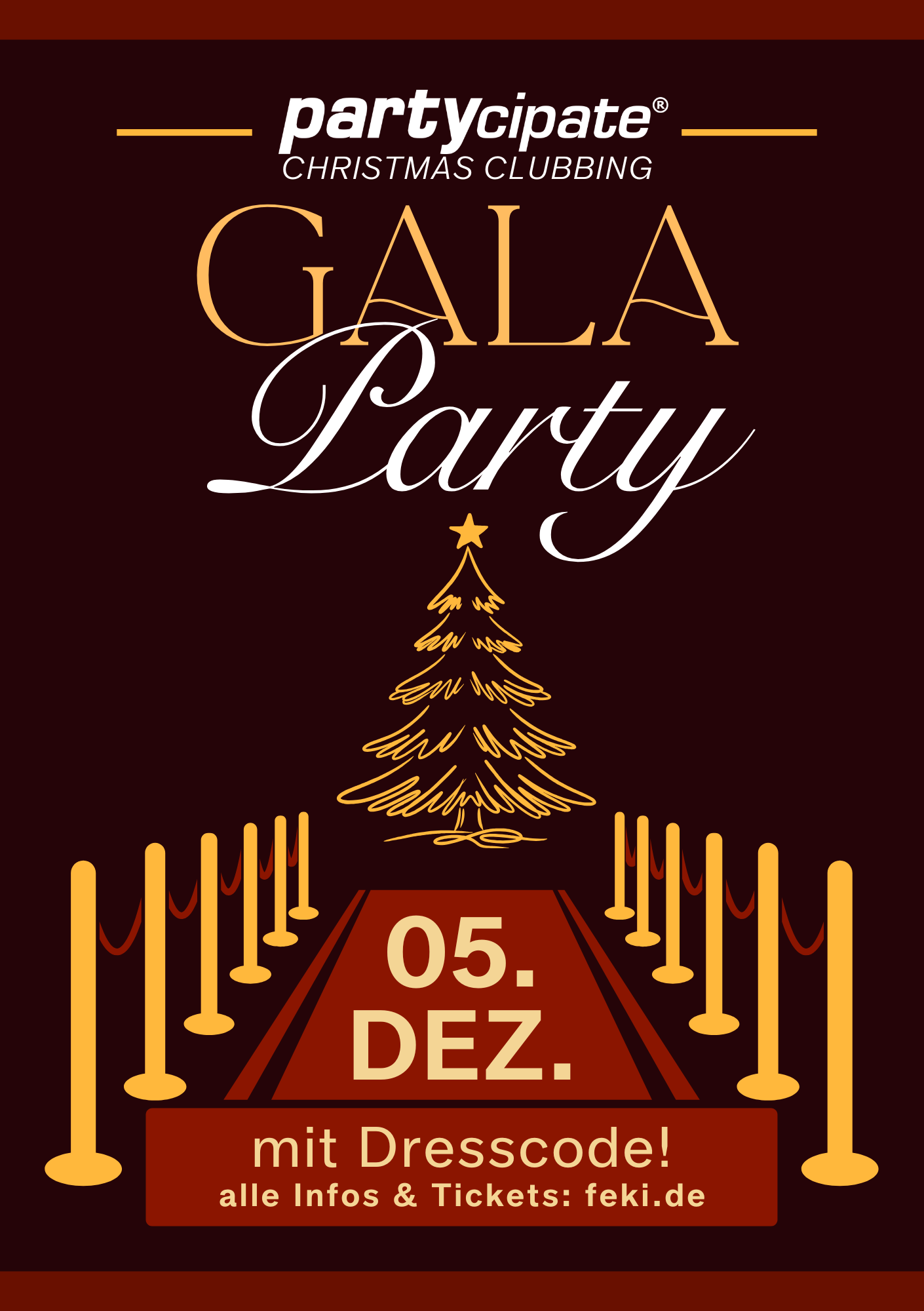 Ihr hattet schon länger nicht mehr die Gelegenheit, euch in eure schönsten Abendkleider mit den schicken Schuhen zu schmeißen? Die neue Krawatte, passend zum Anzug, verstaubt im Kleiderschrank und möchte getragen werden? - Dann haben wir die perfekte Lösung für euch: Am 05.12.2024 feiert Feki.de wieder das partycipate® christmas clubbing - und das in eleganter Abendgarderobe. Wir werden dieses Jahr wieder in den Haas-Sälen bei weihnachtlichem Ambiente von 22 bis 4 Uhr mit euch tanzen.