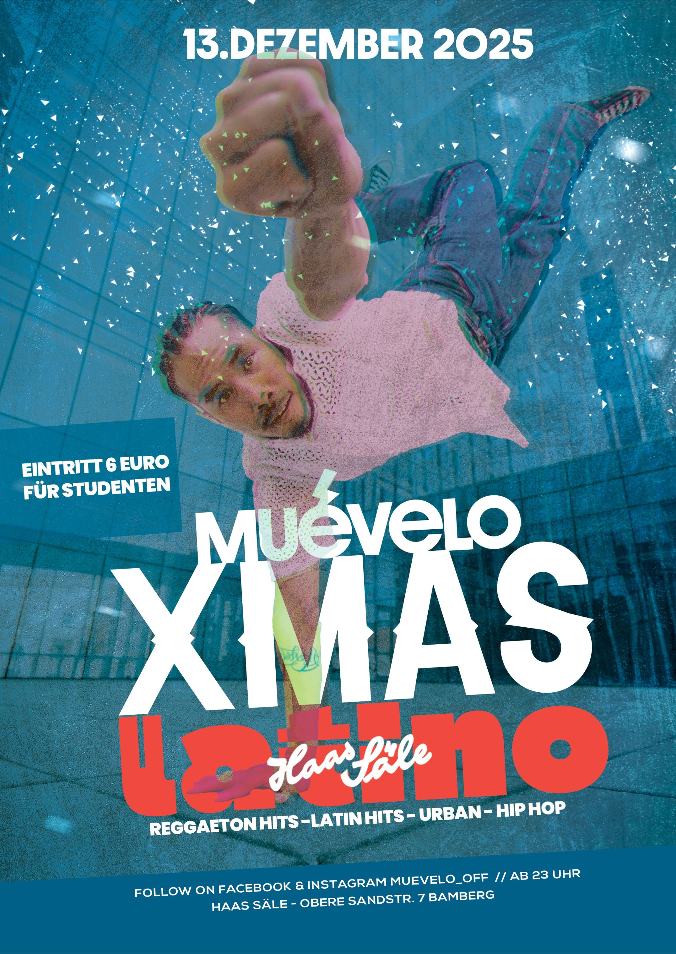 Euer Ticket gilt sowohl für die Muevelo Party in den Haas Sälen als auch für die Party im Live-Club. Wechsel so oft du willst – zwei Locations, doppelter Spaß!