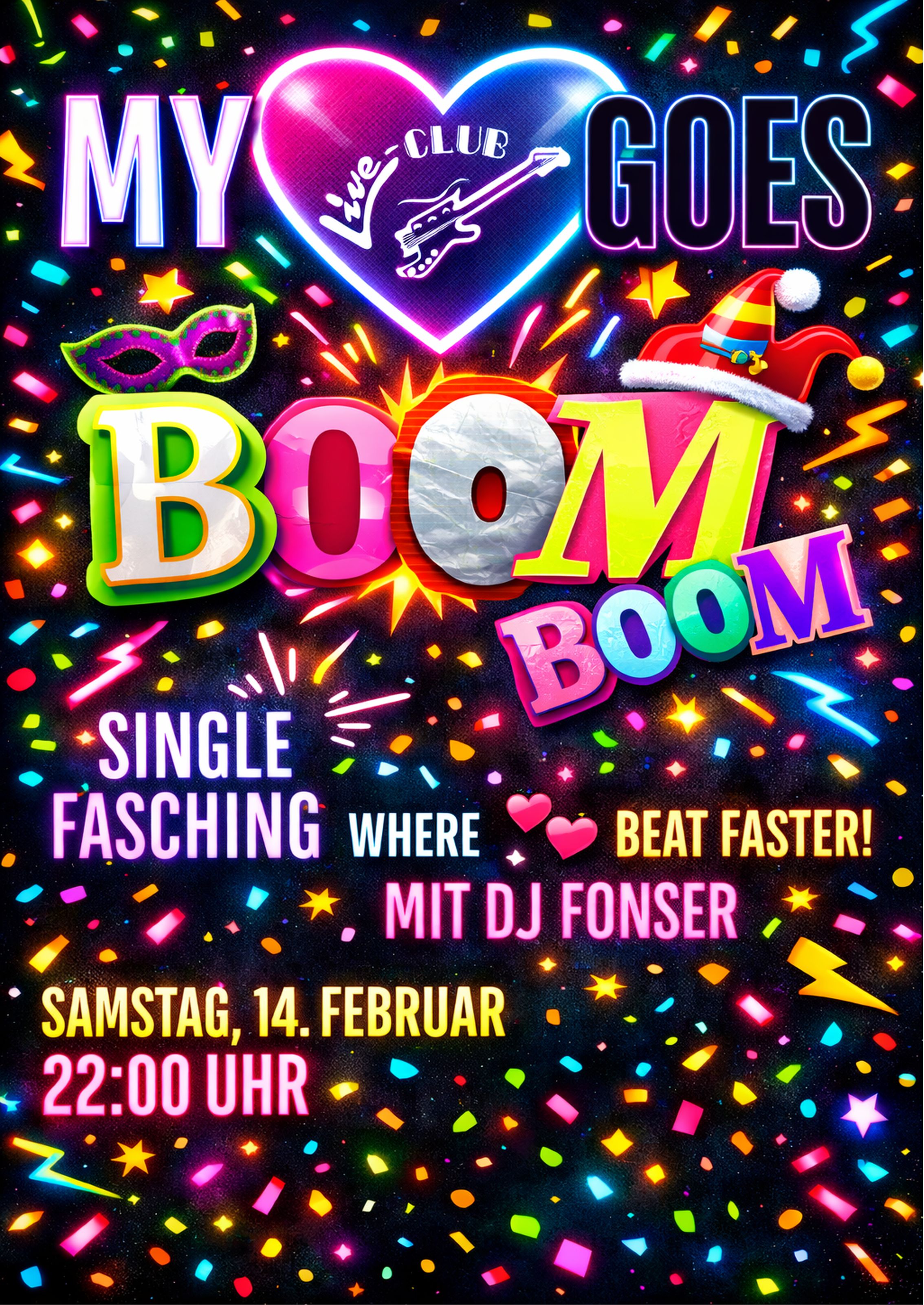 Am 14. Februar verwandelt sich unser Live-Club in den ultimativen Faschings-Hotspot für alle, bei denen Herz, Hüfte und Konfetti gleichzeitig fliegen sollen!