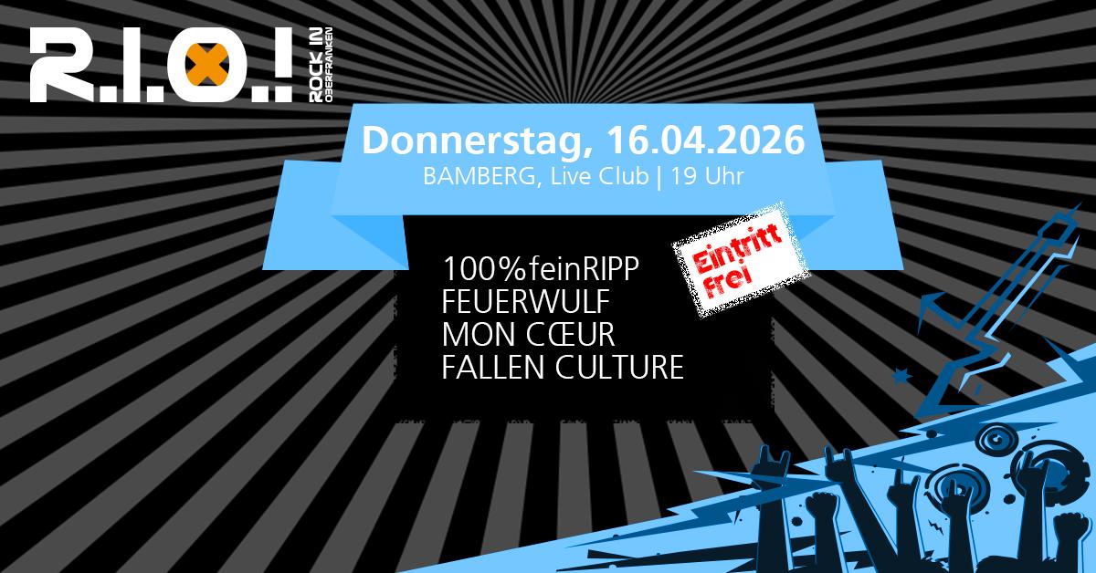 Alle Bands haben bereits regionale Vorentscheide gewonnen und gehen nun gemeinsam auf Tour durch Oberfranken. R.I.O.! ist das Bandförderprogramm des Bezirks Oberfranken und ermöglicht der Bevölkerung, vier der besten regionalen Bands bei freiem Eintritt live zu sehen.